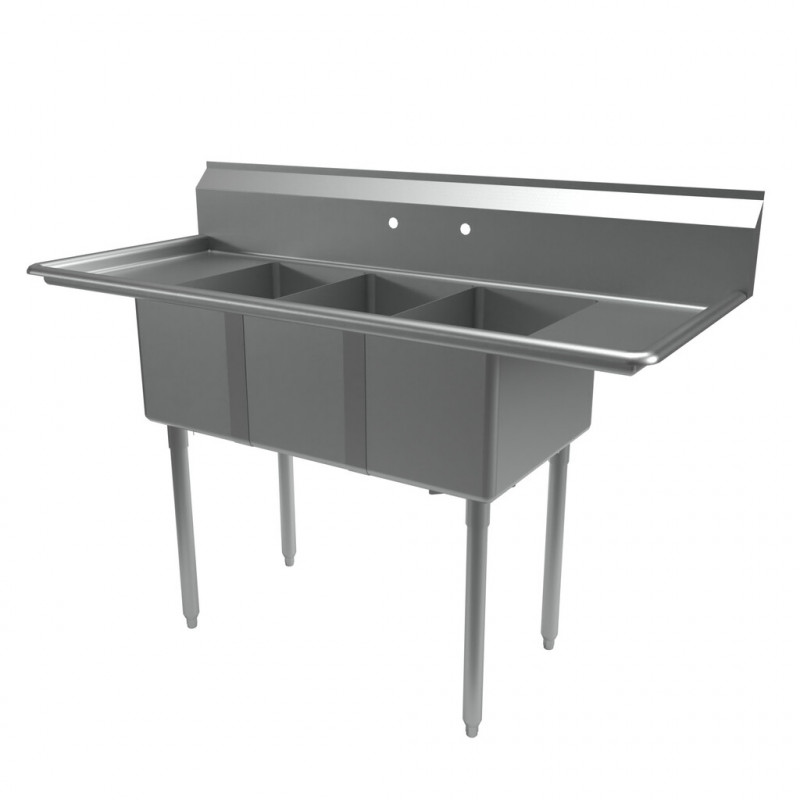 - حوض غسيل بثلاثة أقسام مع سطحي تصريف (Double Drain Board) – الفئة القياسية