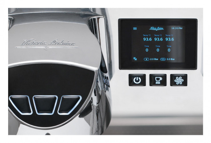 شاشة عرض تعمل باللمس توفر لمحضّري القهوة تحكمًا كاملًا في الآلة. حيث أصبح بإمكانهم ضبط ومراقبة الوصفات، إدارة الطاقة ودرجة الحرارة، برامج الجرعات، تنظيف الآلة وصيانتها، والمقاييس.