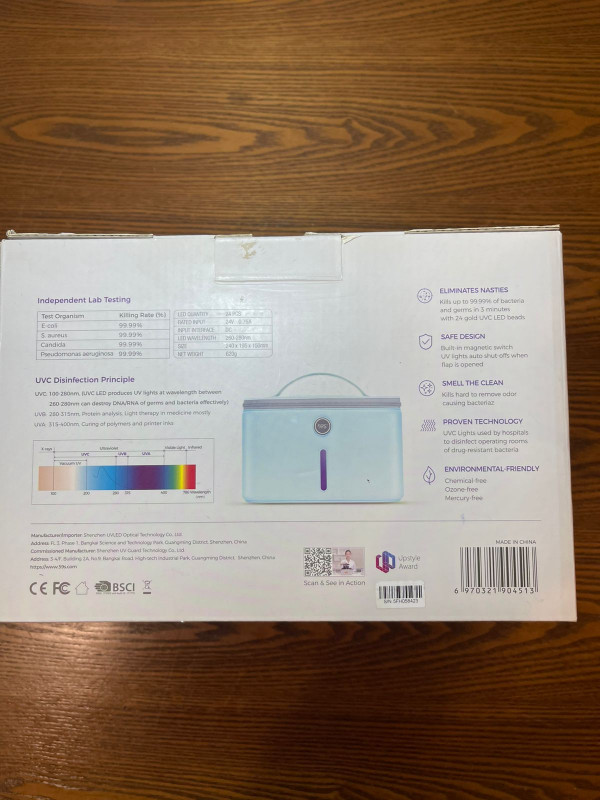 تحتوي على 24 مصباح LED UVC فعال. تصميم آمن يغلق تلقائياً عند فتح الغطاء