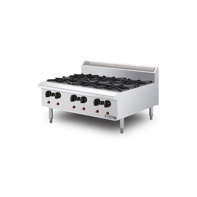 - Burners: Six high-powered open burners for heavy-duty commercial use
