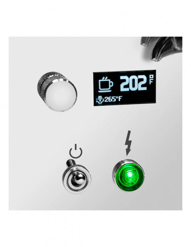 - Easy OLED Display: The redesigned OLED PID display with rotary dial makes navigating easier through pre-infusion options, auto on/off, changing your temperatures, and more!