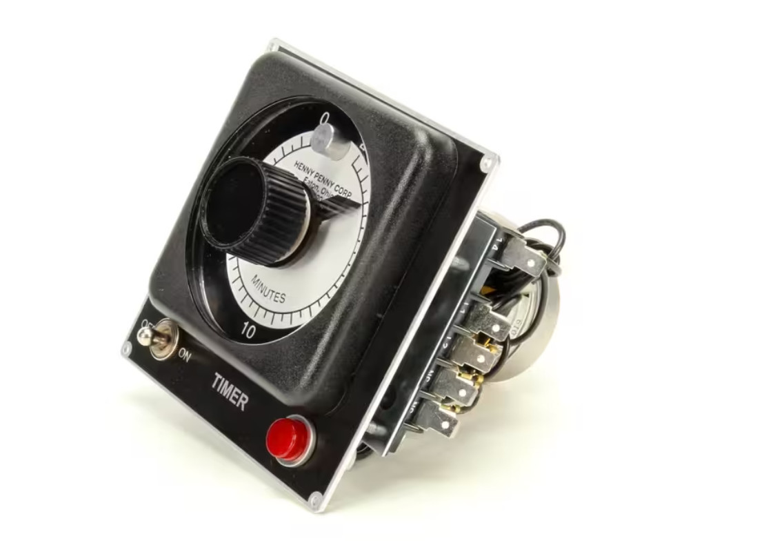 A Henny Penny 16602 Timer Assembly regulates frying duration, which maintains both food and oil quality.