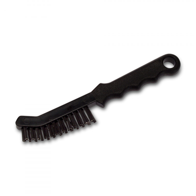 The stainless steel cleaning brush is specifically designed for maintaining enamelled cast iron plates on barbecues. It efficiently removes grease buildup and helps keep electric barbecues in optimal condition. Its ergonomic plastic handle offers a comfortable and secure grip while cleaning, ensuring ease of use and effective maintenance.