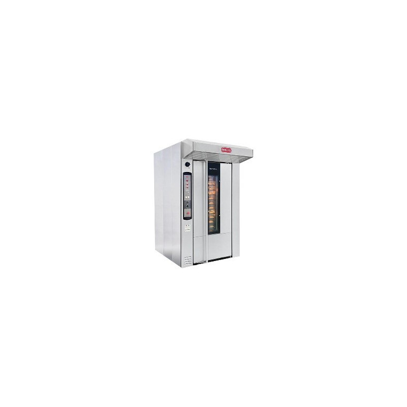 - Experience exceptional baking results with this highly efficient rotary convection oven, ideal for bread and pastry production. Built for both performance and hygiene, it offers two trolley loading options: top-coupled for easy floor cleaning or bottom platform for convenient loading/unloading.